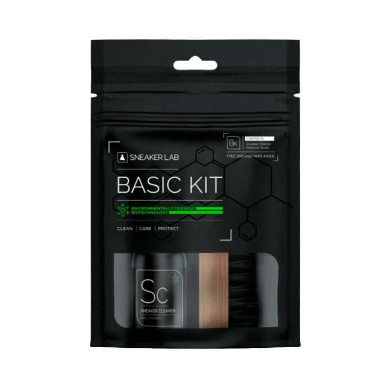 Rimuovere lo sporco sarà molto più veloce grazie al Basic Kit (Cleaner-Premium Brush - Individual Wipe), che include un detergente per scarpe e una spazzola premium confezionati all'interno di un beauty da viaggio richiudibile.