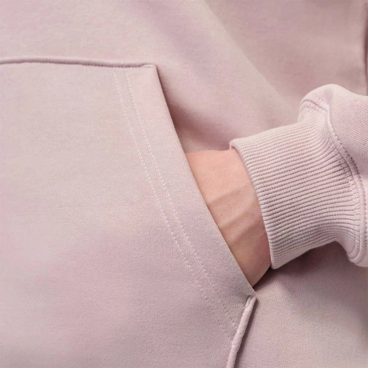 - Tessuto Fleece di peso medio, morbido e strutturato.