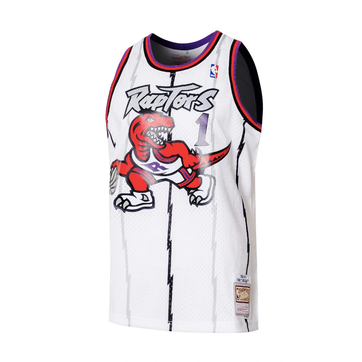 Tifa per la squadra e il giocatore che adori indossando la maglia Swingman Jersey Toronto Raptors - Tracy McGrady 1998-99 della marca Mitchell & Ness.