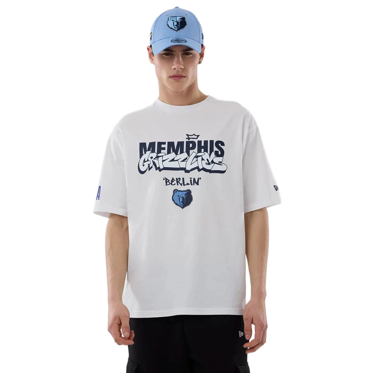 • Grafica con la parola “Berlin” e il logo dei Memphis Grizzlies sul davanti