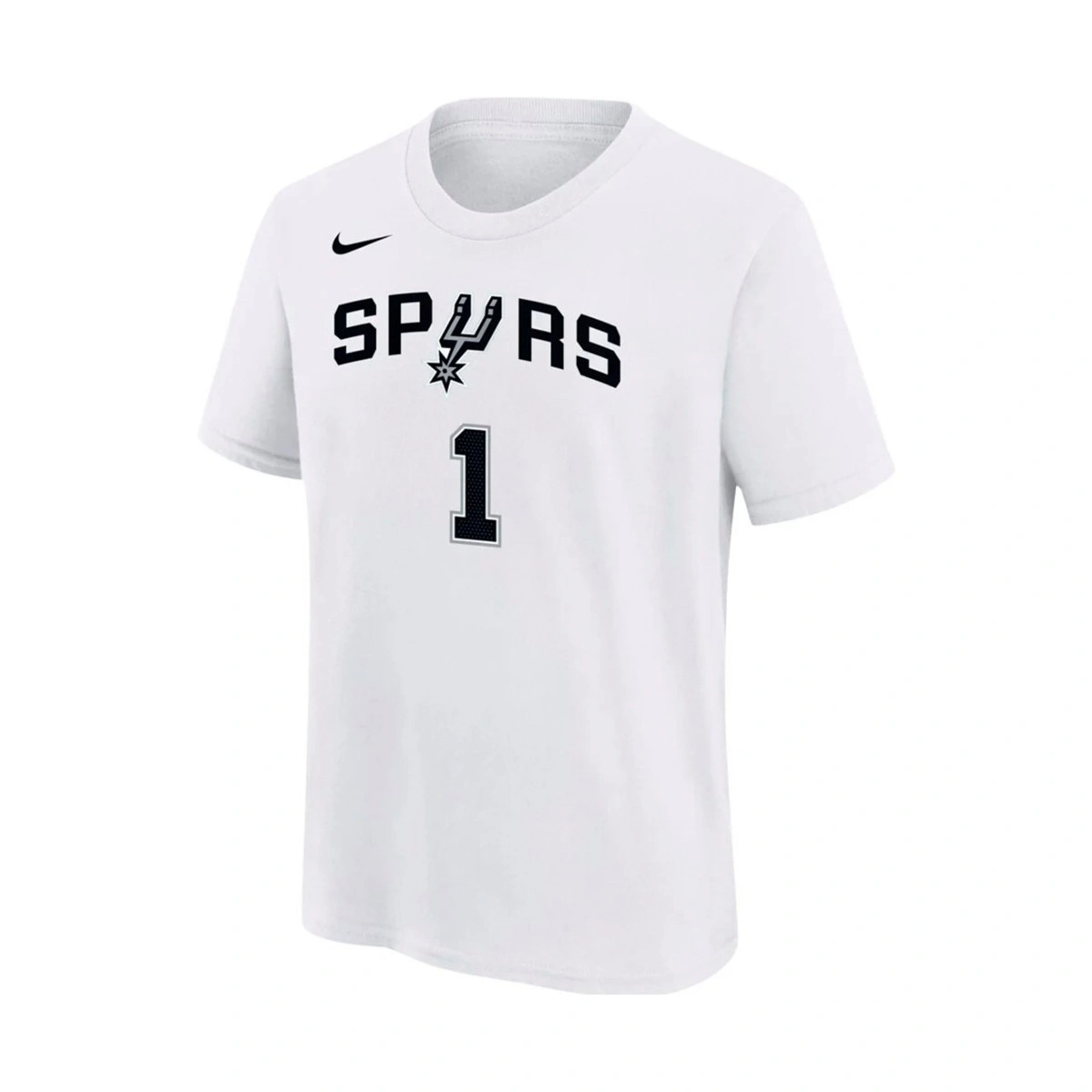Tifa per Victor Wembanyama mentre indossi la maglietta dei San Antonio Spurs. Ispirata alla maglia Association Edition, presenta un modello informale con gli accattivanti motivi del nome e del numero del giocatore.