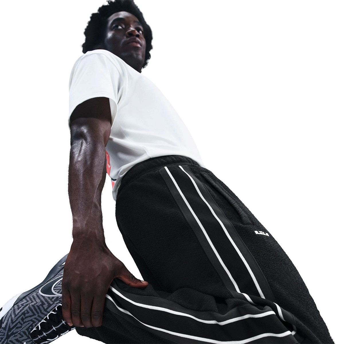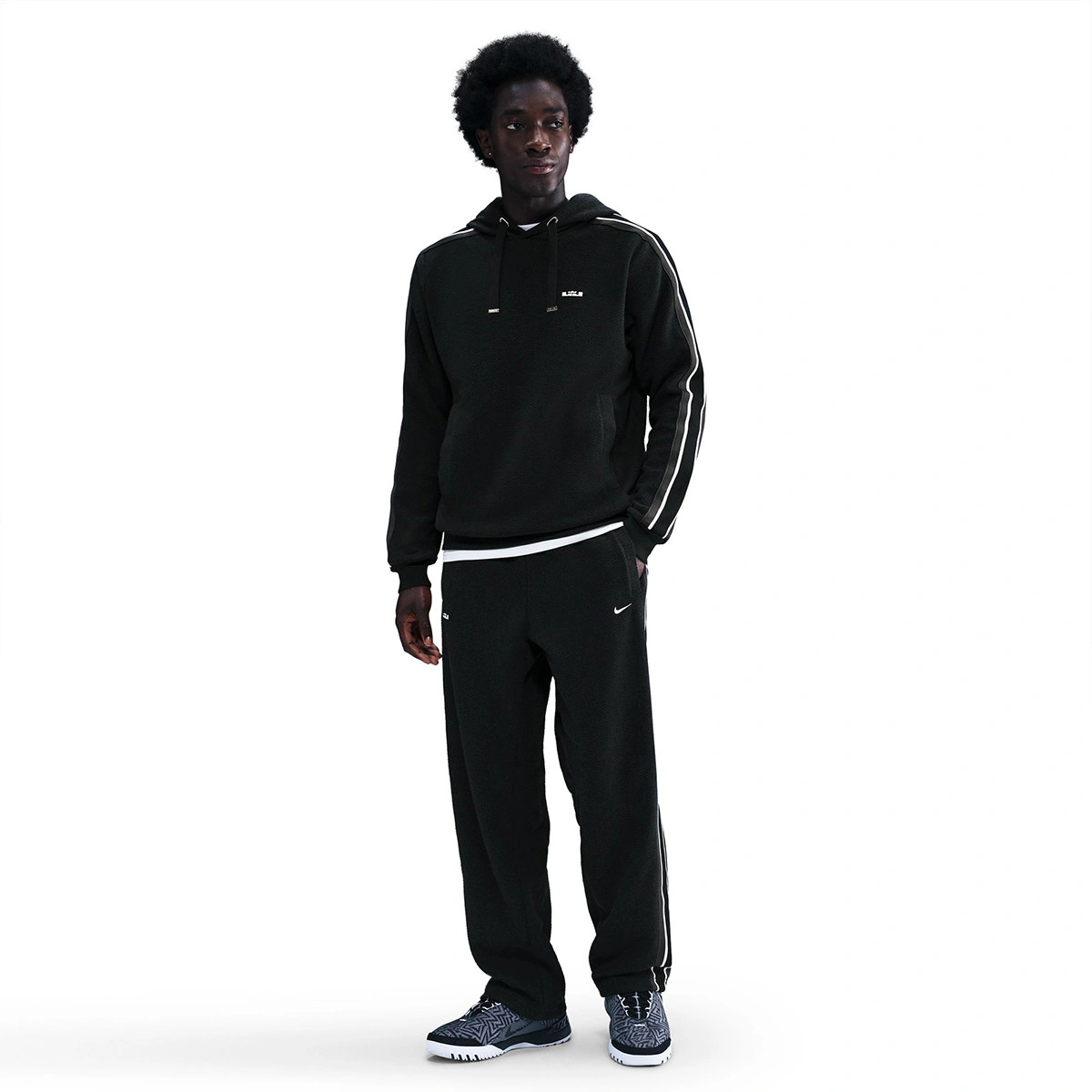 - Alcuni dettagli rendono omaggio alla carriera di LeBron, come le estremità del cordino di regolazione che mettono in risalto il numero della sua maglia, oltre al logo con le iniziali “LBJ” e la corona. L'etichetta in tessuto sul retro del colletto riporta il mantra “Forever King” (Re per sempre).