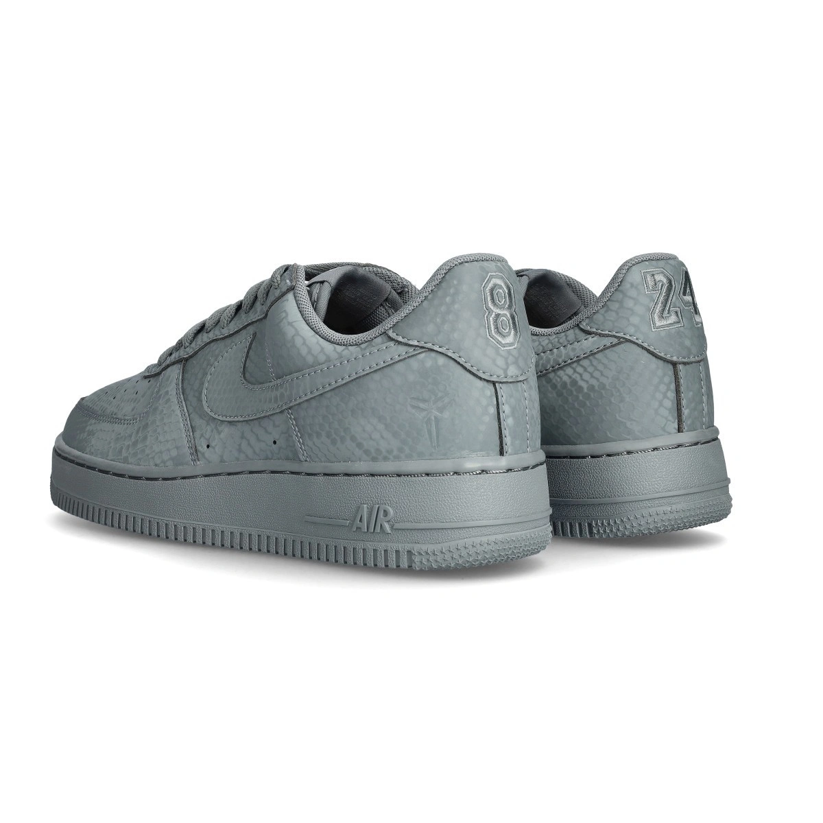 Queste edizioni speciali delle Air Force 1 sono impregnate del DNA di Mamba, visibile nella fantasia in pelle di serpente su tutta la scarpa che aggiunge un tocco distintivo a un classico senza tempo. I numeri 8 e 24 ricamati sul tallone rendono omaggio ai numeri di maglia ritirati di Kobe, mentre i loghi Sheath sulla linguetta e sul tallone esterno aggiungono un tocco esclusivo. Queste Kobe Air Force 1 portano avanti la legacy del giocatore con speciali piastrine "Mamba Forever" sui lacci.