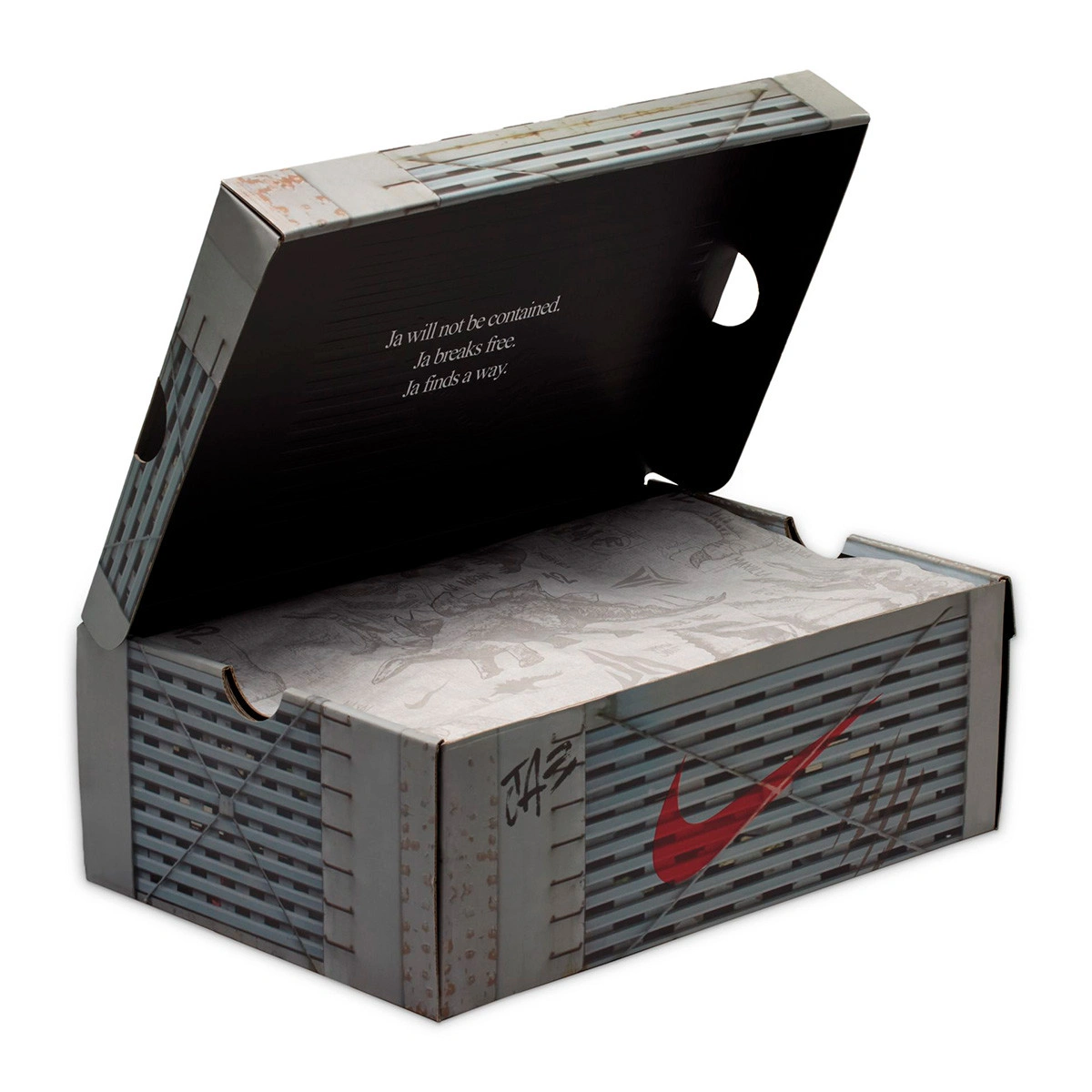Quando Ja si è incontrato con i designer di Nike, è stato chiaro: "Non abbiate paura. Andateci forte". Il risultato? Il logo Swoosh verticale e i graffi rendono questo modello un'icona che cattura tutti gli sguardi.