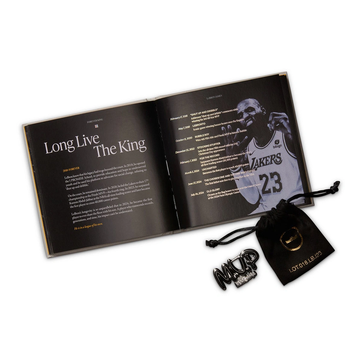 - Queste scarpe includono ogni tipo di dettaglio: da una scatola speciale e una sacca per riporre le scarpe fino a uno stemma MVP. Non togliere gli occhi di dosso dalla brochure che racconta le 23 storie del viaggio Forever King.