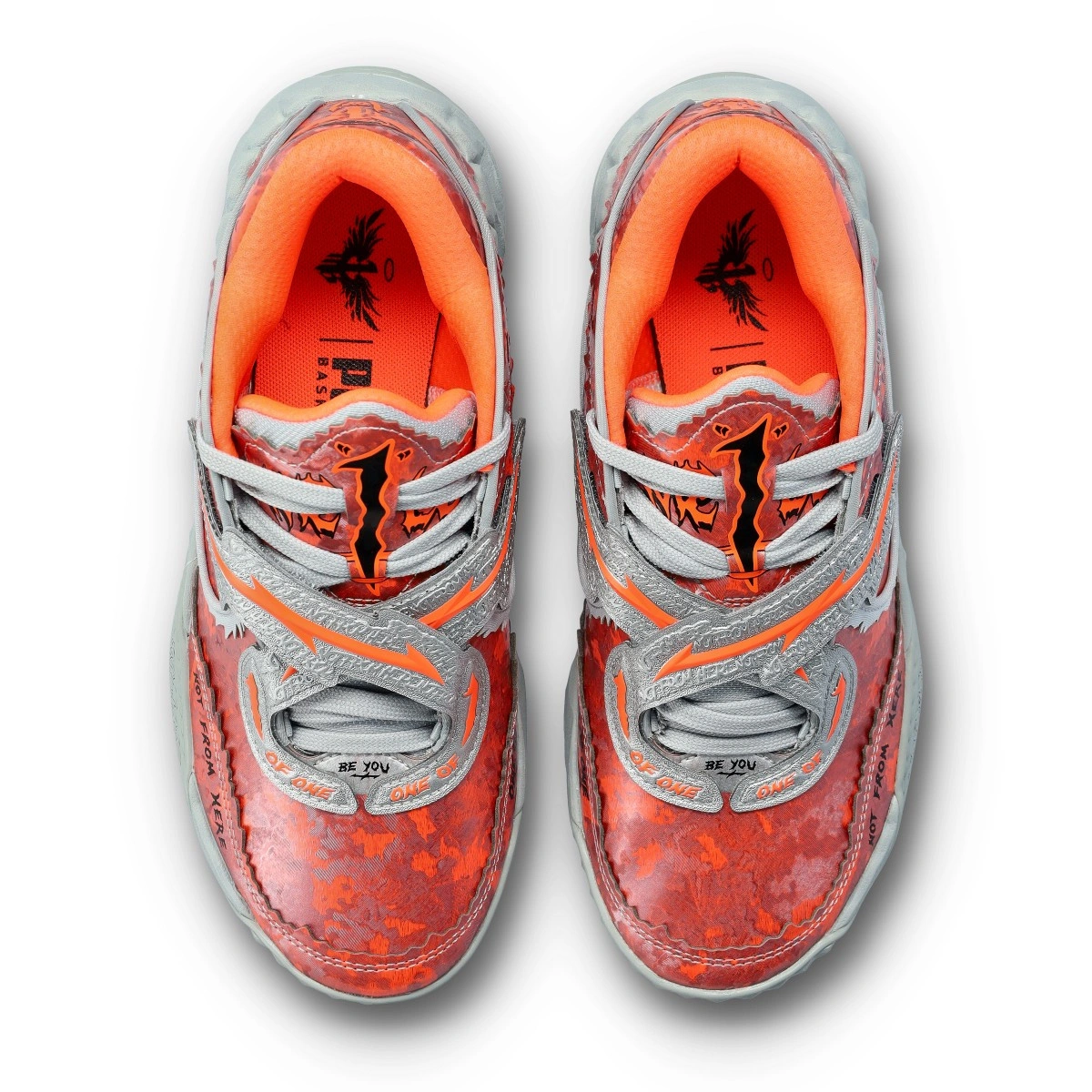 La suola incorpora dettagli come un teschio e il numero '1', integrando elementi visivi legati al giocatore.